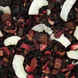 Фруктовая смесь на основе каркаде с кусочками ананаса, папайи, жареного яблока, шиповника, бузины, кокосовыми чипсами. Имеет яркий тропический аромат экзотических фруктов. 100гр